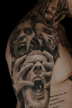 Mr. Nobody is a black & grey realism guide who creates powerful, dark imagery that helps clients transform struggle into strength and identity.
